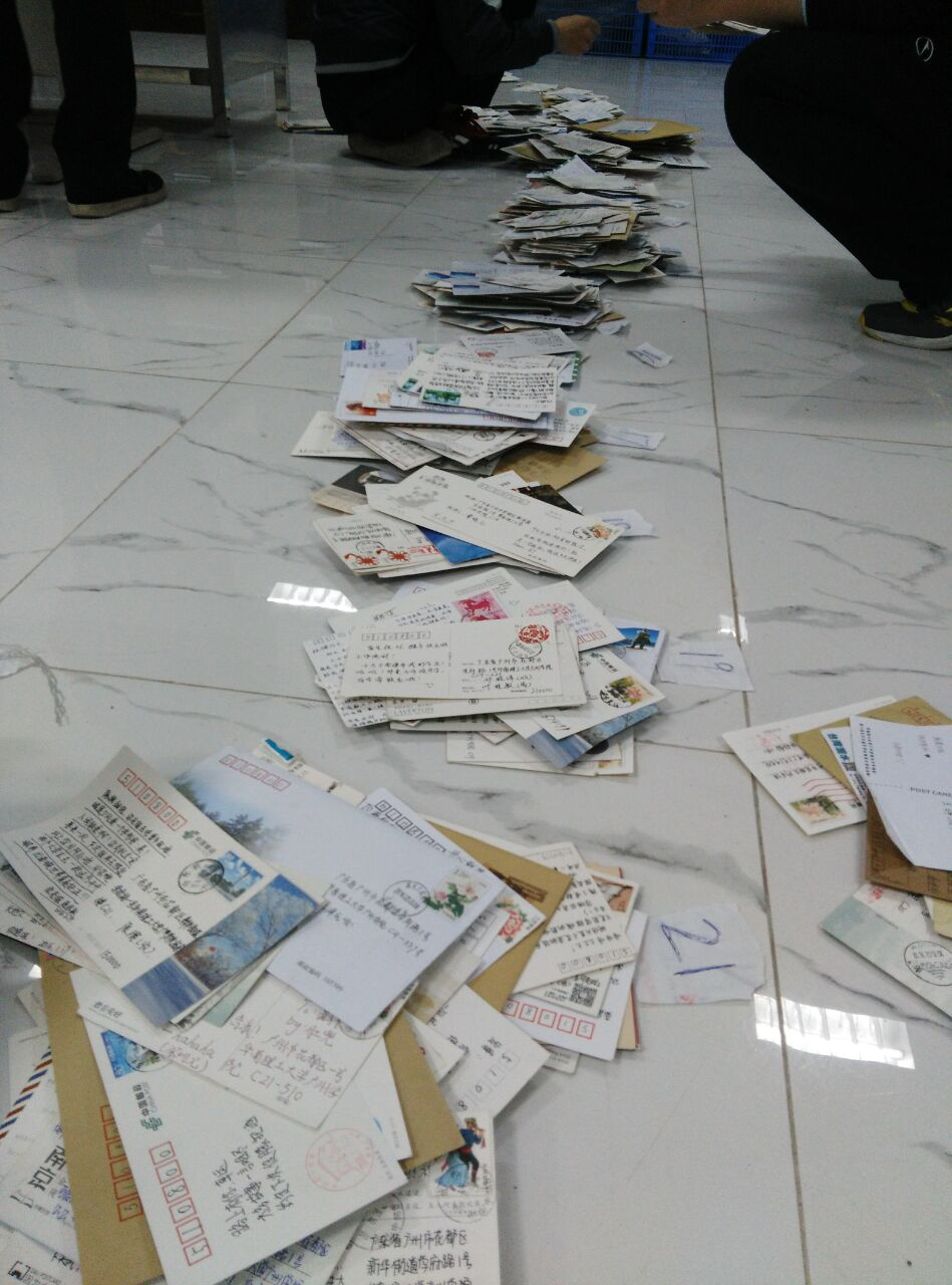 在这个过程中,由于书信较多,我们就分组合作,两三个人一组,一人分一人放,一人数,最后在我们的齐心协力下,终于完美地完成了分信的任务。最后将他们放到了宿舍楼下。做了这些公益活动,很累,但感觉很开心。真的很感谢有这次机会。