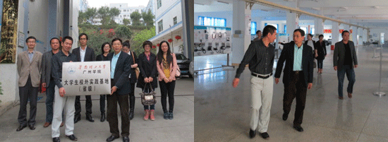会后,举行了赠牌仪式,陈院长将“大学生校外实践基地(省级)”牌匾赠予王玉彪董事长。并在企方代表的带领下,参观了该企业的车间、库房、培训中心,及学生住宿场所。