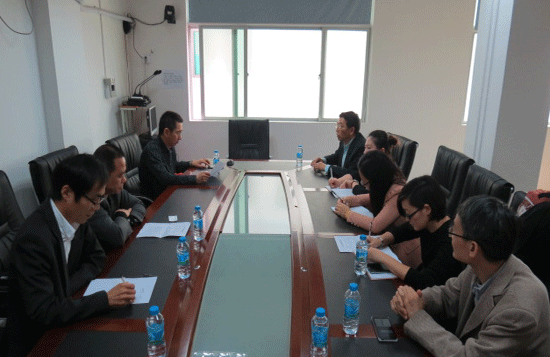 本网讯 3月18日,汽车工程学院院长陈秉均带领该学院教研室、实验中心、办公室等相关老师一行赴深圳市风向标科技有限公司开展大学生校外实践教学基地建设项目洽谈工作,该公司董事长王玉彪及培训部、市场部等相关负责人参与了会议。
