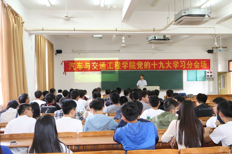 本网讯 10月18日,中国共产党第十九次全国代表大会在北京隆重召开。上午9点-12点,汽车与交通工程学院党总支在A5-304教室设立党的十九大精神学习分会场,组织学院全体教师党员、学生党员和入党积极分子集体观看了十九大开幕直播。