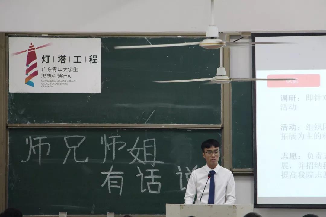 师兄师姐们分享完之后,就是汽车与交通工程学院团委学生会各部门介绍以及对师弟师妹的寄语。