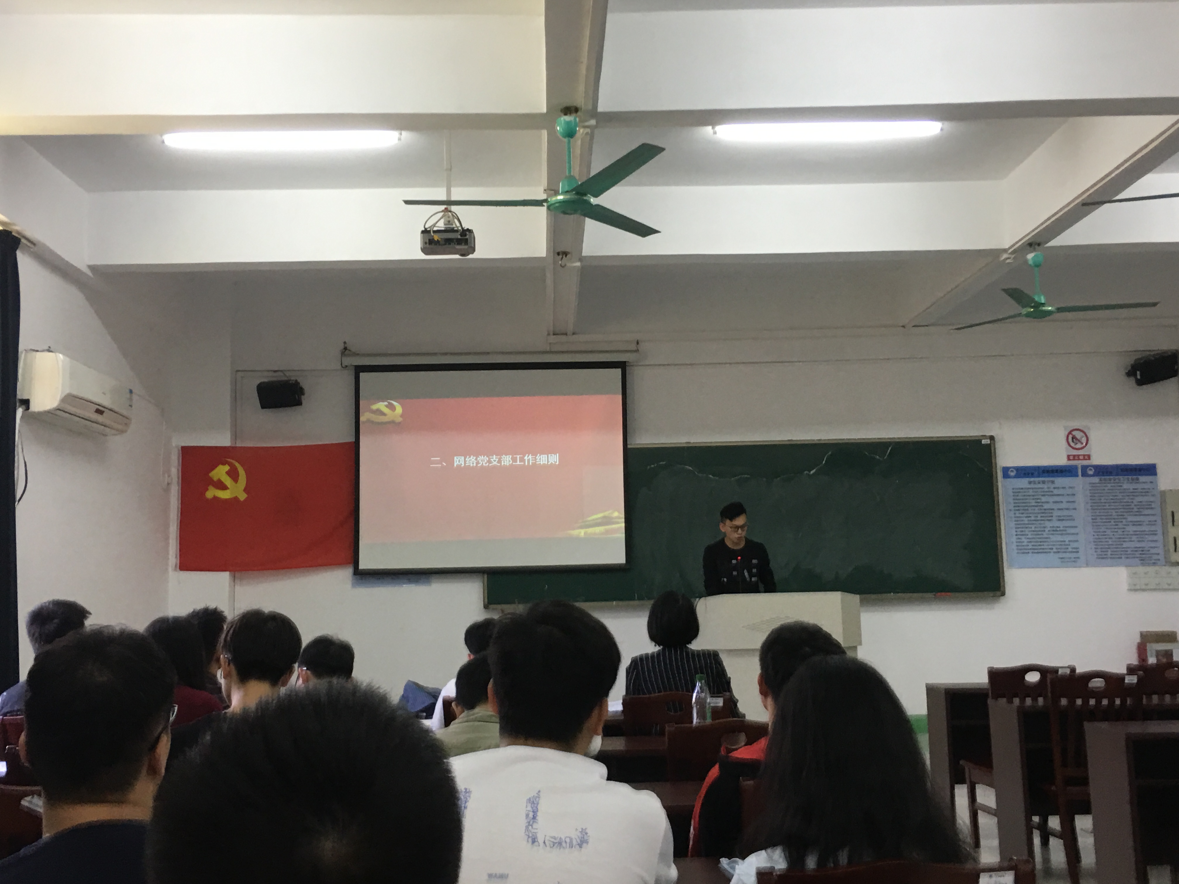 2016级预备党员游伟健同志宣读了网络党支部工作模式、工作细则,让大家对网络党支部基本情况有个初步了解:大四学生(预备)党员、入党积极分子在外出实习期间,依托网络党支部微信群等平台每季度向培养联系人汇报自己思想、学习、工作和生活上等方面情况;网络党支部需每月至少开展一次党组织活动;而重大组织工作必须依规通过实体党支部开展。