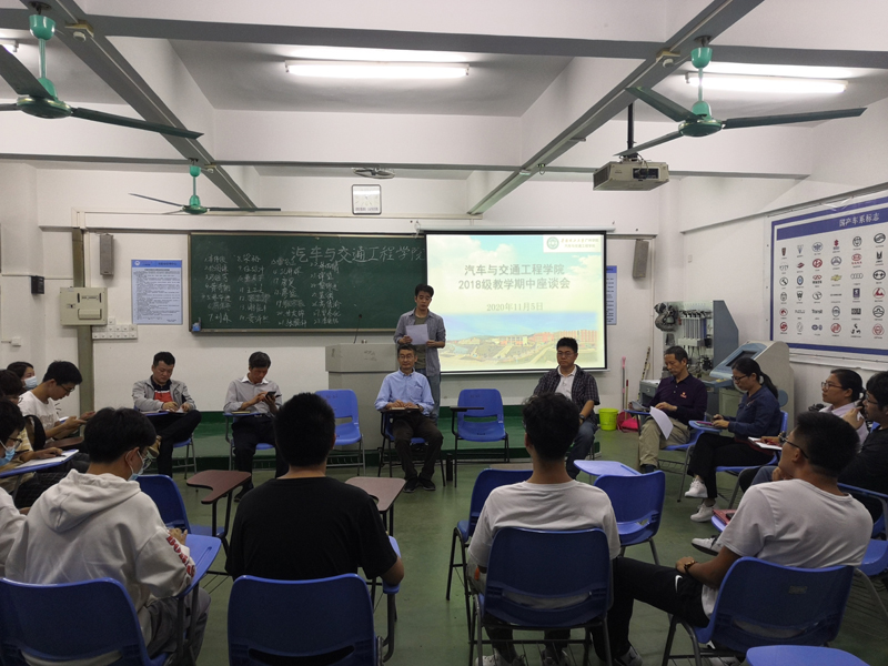本网讯(记者 陈穗君 邱冰妍 朱智勇)为了进一步加强我院优良学风建设,帮助广大学生树立正确学习观,明确学习目标,掌握科学的学习方法,提高教育教学质量。11月5日-11月6日,汽车与交通工程学院分别在B8-206、B6-203、B6-203召开了2018级、2019级、2020级期中教学情况学生座谈会。汽车与交通工程学院副院长尚启超、姜立标,院长助理钟玉华,各教研室教师,各班同学代表90余人出席了会议。