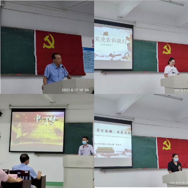 一个小时的专题党课后,教工党员张继锋、程清伟和学生党员段昆昕又分别以微党课的形式分享了前段党史学习教育中的体会和感想,最后院长李礼夫进行了总结发言。活动结束后,广大师生纷纷表示,此次活动主题突出、内容丰富,深受启发、备受鼓舞,是一次生动而又深刻的党史教育升华课,教工党员张明容说:“本次党课使我受益匪浅,让我再次感受到我们党的伟大、光荣和正确,再次加深了自己对全心全意为人民服务宗旨意识的理解”,学生预备党员甘锐华讲到:“本次党课中讲到陈望道翻译《共产党宣言》时把墨汁当白糖,而丝毫没有觉察的故事给我留下了深刻的印象,这该是有多专注、多投入、多热爱、多忘我时才会出现的情景啊,这背后又该是多么坚定无比的信仰做支撑!作为新时代的一名大学生预备党员,我一定要树立共产主义的远大理想,坚定信念,增强能力、提升素质,努力成长为堪当民族复兴大任的时代新人!”
