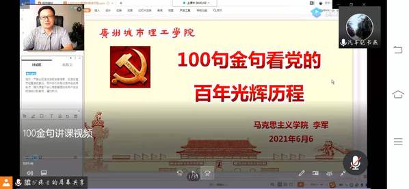 (本网讯 记者李良媛)为庆祝中国共产党成立100周年,加强基层党史学习教育,汽车与交通工程学院于2021年6月29日19:00在腾讯会议召开了《城理讲坛第五讲》,本次讲坛的主讲人为马克思主义学院书记李军同志,参加会议的有汽车与交通工程学院全体学生党员、预报党员和入党积极分子。