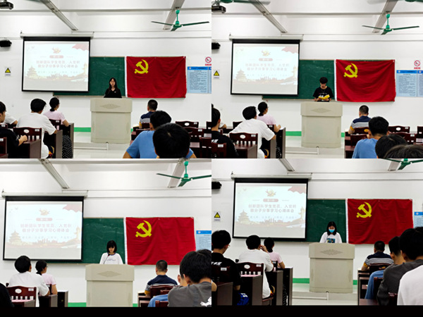 会上,汽车与交通工程学院各个创新团队的学生预备党员、入党积极分子代表分享了学习了习近平总书记在庆祝中国共产党成立100周年大会讲话精神的心得感悟。学生预备党员、华汽车队队长谢文婷同志讲到“习近平总书记的‘七一’讲话,令我心潮澎湃又觉重任在肩,我想追梦人对中国共产党百年华诞的最好致敬,就是不忘初心、牢记使命,就是不懈奋斗、永远奋斗、砥砺奋进,续写华章!”学生预备党员、华汽电动车队经理黄泳铧讲到:“看完7月1日的盛会,倾听学习了习近平总书记的重要讲话,我十分的激动感慨。中国共产党是历史和人民的选择,中国现在的独立自主不是轻轻松松就实现了的,中国现在的繁荣昌盛也不是轻而易举就达成了的,这其中有无数英雄、众多烈士坚定信念,前赴后继,流血流汗,我们一直知道他们伟大,却可能依然低估他们的伟大。今天的我们要像无数先烈、无数英雄前辈一样去做我们这一代人应该做的事情,学好本领,砥砺奋进,担负起时代赋予我们的民族伟大复兴的历史责任,为它付出,为它拼搏,实现的道路可能不是一帆风顺的,但再难也不会比革命先辈建立新中国难。”学生预备党员、华汽车队队员吴泓谚讲到:“聆听和学习习近平总书记‘七一’讲话后,我心潮澎湃、倍感振奋、备受鼓舞。我们要深入学习贯彻习近平总书记重要讲话精神,在新征程上继承和发扬伟大建党精神,更好肩负起时代赋予的光荣使命,为实现中华民族伟大复兴贡献力量。”入党积极分子、飞鱼物流工作室队员李瑞阳讲到:“习近平总书记的‘七一’讲话,回顾我们党百年奋斗的光辉历程,展望中华民族伟大复兴的光明前景。我为自己成长在当代的中国而庆幸、为自己是一名入党积极分子而自豪。作为新时代的一名青年,应该扛起实现中华民族伟大复兴的中国梦的重任,走好我们这代人的长征路,一步一个脚印,脚踏实地,坚定理想信念,志存高远,不忘初心,砥砺前行,努力提升知识储备和自身本领,将社会主义核心价值观付诸于实践,发挥自身能力,积极投身于社会主义现代化建设,请党放心,强国有我!”