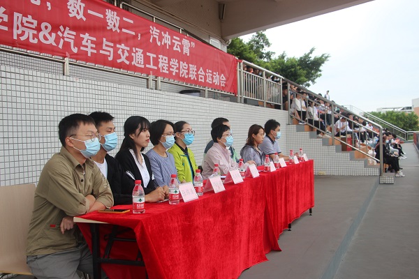 本网讯(记者 邱冰妍 何立安 邹敏)2021年10月17日早上8:00,汽车与交通工程学院与计算机工程学院/大数据学院于田径场、足球场、室内篮球场召开“计艺超凡,数风流人物,汽冲云霄”汽车与交通工程学院与计算机工程学院/大数据学院联合运动会。汽车与交通工程学院副院长钟玉华院长、计算机工程学院副院长罗军院长、汽车与交通工程学院学生办公室主任纪书燕老师、计算机工程学院办公室副主任赖卓虹老师及老师代表们出席了本届运动会的开幕式。