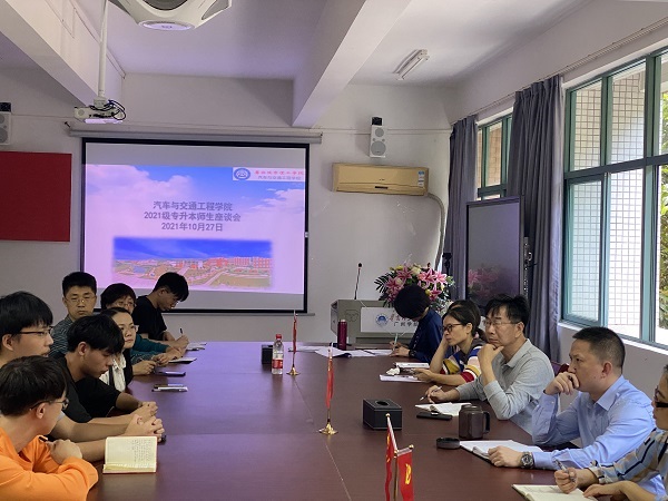 本网讯(记者张锦浩)为进一步加强学院优良学风建设,帮助广大学生树立正确学习观,明确学习目标,掌握科学的学习方法,增强教学互动,提升教育教学质量,10月27日,汽车与交通工程学院分别在B8-206、B6-203召开2021级普通本科、2021级专升本师生座谈会。汽车与交通工程学院院长李礼夫,党总支书记林叙群,相关负责人及各教研室教师、各班同学代表30余人参加会议。