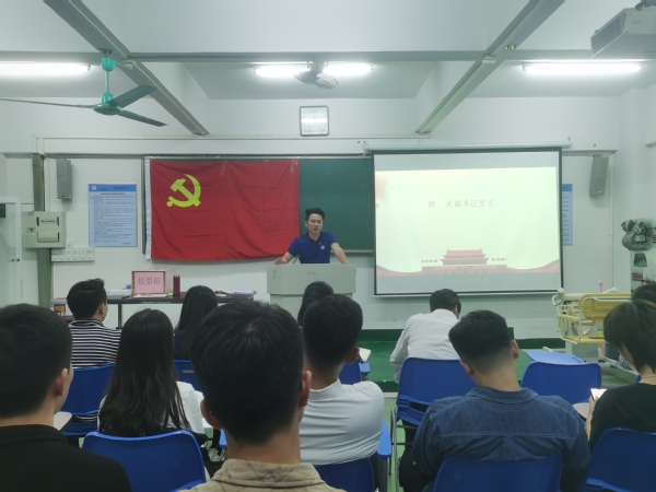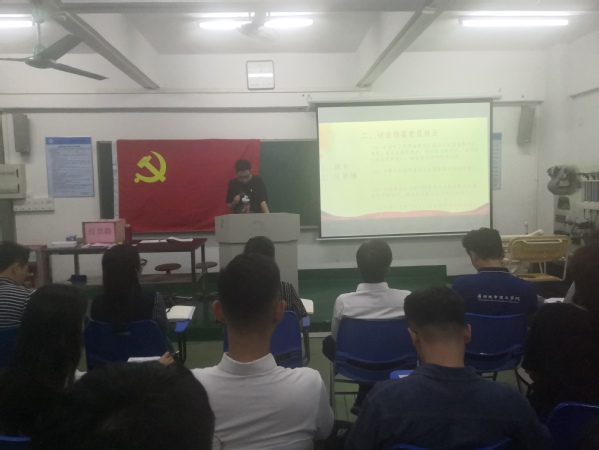 大会第二项是讨论接收预备党员,发展对象梁正灿、吴炫键、蔡友彬、吴涟漪、黄泽豪、章彦博、张志浩同志依次对自己的情况进行汇报,提出发展申请。再由入党介绍人介绍情况,并对其能否入党表明意见,支部委员会报告对发展对象审查的情况,随后与会党员发表意见并进行充分讨论,无记名投票表决。七位入党积极分子均以全票通过,成为了预备党员。