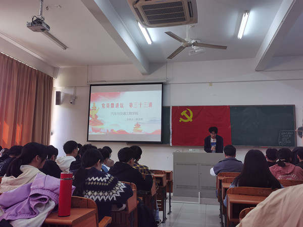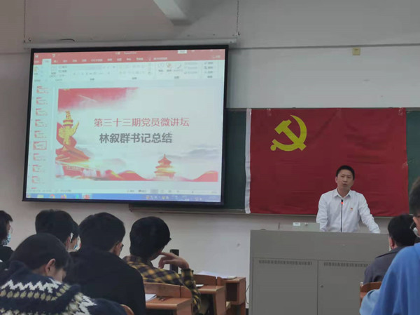 本网讯(记者 徐添桦)汽车与交通工程学院党总支于2021年11月18日中午12:50在A1-102召开了党员微讲坛第三十三讲,我院党总支书记林叙群、党总支副书记纪书燕及全体学生党员和入党积极分子参与了本次会议,本次微讲坛由陈浩男同志主持,由冯科瑜同志、王子铭同志、吴炫键同志、刘继锋同志以优秀党员干部精神为主题进行分享学习。