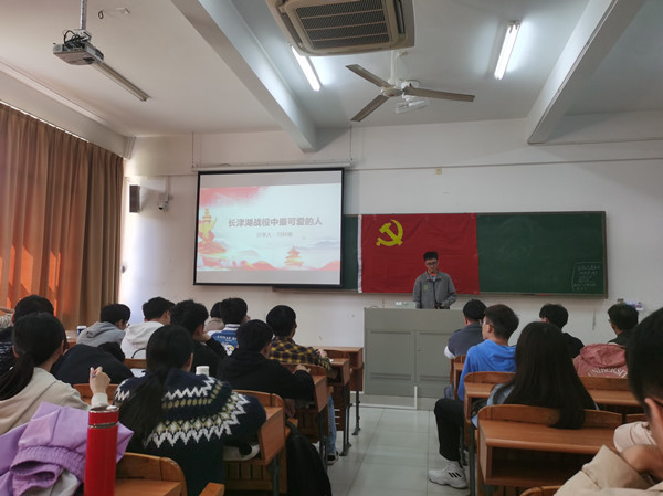 冯科瑜同志讲述了“抗美援朝战争中最可爱的人”,他分别从长津湖战役、那些最可爱的人、传承红色基因三个角度讲解了抗美援朝战争的艰难和中华人民不畏困难、迎难而上的伟大精神。这部电影让大家明白了“保卫家国”这四个字并非看起来那么容易,伟大的中国人民志愿军的精神是值得吾辈青年学习的。