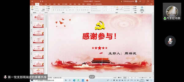 最后,林叙群做总结讲话,他希望同学们按照学院党总支的工作部署和安排,积极参加微讲坛学习和分享,持续加强四史学习,以习近平新时代中国特色社会主义思想为指导,弘扬伟大建党精神,坚决拥护“两个确立”,增强“四个意识”,坚定“四个自信”,做到“两个维护”,全面提升自身综合素质;希望同学们充分利用线上资源,积极开展线上参观和学习,学好红色历史,传承红色基因,讲好红色故事。接着,纪书燕对此次微讲坛进行了两点总结,她要求广大同志一要强化纪律意识,严守底线,学院学生党务中心会周周通报全体党员、入党积极分子在课堂纪律,疫情防控,青年大学习,晚归、不熄灯等情况;二要强化身份意识,努力发挥作用,在思想引航、学业帮扶、宿舍建设、专长培养等示范岗建设中履责践诺,学院每学期会进行总结,每年进行评优评先。