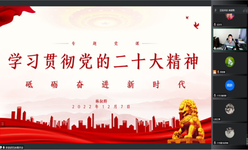 本网讯(记者 王秋懿)为深入学习贯彻党的二十大精神,持续营造浓厚的学习氛围,汽车与交通工程学院党总支书记于12月7日以“学习贯彻党的二十大精神,砥砺奋进新时代”为主题开展线上宣讲活动,2022级新能源汽车专业全体学生和2021级部分学生代表参加了本次会议。