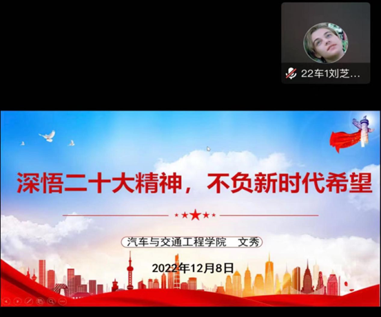 本网讯(记者 刘芝教)为深入学习宣传贯彻党的二十大精神,进一步加强新时代青年思想政治引领,根据汽车与交通工程学院的宣讲安排,由学院党政领导干部牵头,全体辅导员于12月8日至11日面向各年级学生开展了二十大精神的集体宣讲活动。