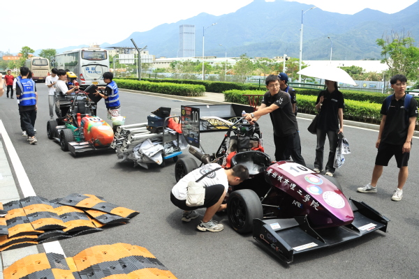 本网讯(记者 陈增起)2024年5月18日,受深圳技术大学邀请,汽车与交通工程学院华汽车队陈增起、方彦奎、江秋仪、易汉卿等指导老师带领油车队、电车队一行五十余人,带上23赛季全国赛归来的10号油车和E12号电车,参加了深圳技术大学第四届汽车文化节第三天活动暨首届大湾区极速挑战杯赛。