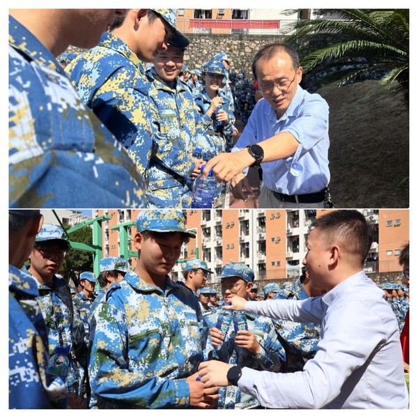 随后,李礼夫、林叙群与团委学生会成员们一起亲手将慰问品送到军训学生手中,鼓励新生们在军训场上能够继续保持高昂的斗志,刻苦训练,圆满完成军训任务,参训学生备受鼓舞,并报以热烈掌声。