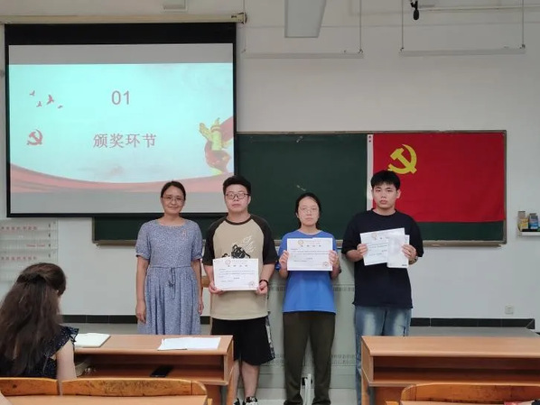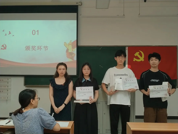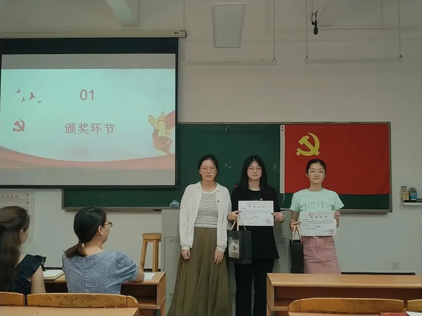学生第一党支部精心策划的“我为祖国送祝福”线上主题活动,以创意十足的祖国祝福视频拍摄、深情厚谊的征文创作及匠心独具的祝福贺卡设计等多种形式,搭建了一个让广大学子倾诉心中挚爱、传递美好祝愿的平台。本次活动自启动以来,便赢得了同学们的广泛支持与积极参与,每一份作品无不饱含着对祖国母亲深沉的情感与真诚的祈愿,展现了新时代青年学子深厚的家国情怀与蓬勃的时代风貌。颁奖环节中,纪书燕老师、文秀老师和陈子涵老师分别向在视频组、征文组及贺卡组评选中脱颖而出的优秀作品创作者颁发了奖项。