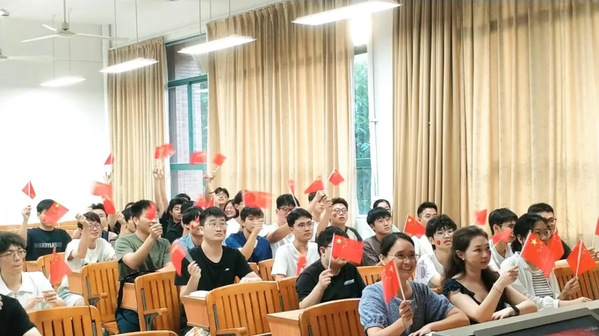 最后,全体师生汇聚一堂,共唱《我和我的祖国》,将活动现场推向了情感的高潮。每个人的脸庞上,都贴饰着鲜艳夺目的小国旗,宛如点点星光,闪烁着对祖国炽热的爱意。随着熟悉的旋律响起,师生们的歌声随即交织在一起,每一句歌词,每一个音符,都承载着我们对祖国山河的深深眷恋,以及对她繁荣昌盛的诚挚期盼。