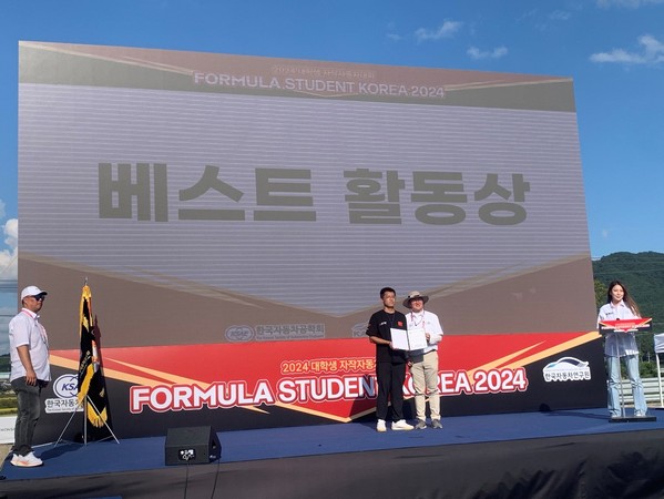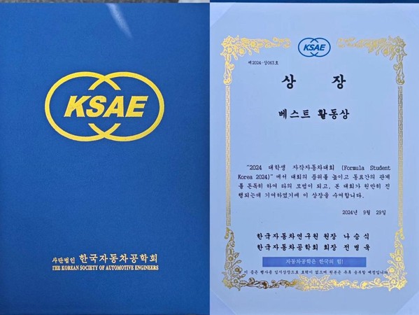 此次赛事中,车队凭借卓越的表现和出色的团队精神,荣获2024韩国大学生方程式汽车大赛最佳团队奖。此项荣誉不仅体现了他们在技术上的突破,也为队员们的辛勤付出和坚持不懈画上了圆满的句号,成为赛事中的重要亮点,激励着队员们在未来的国内外比赛中继续奋勇争先。