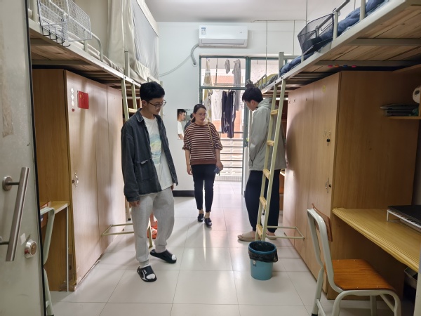 本次评比围绕“卫生整洁、安全规范、文化氛围、团队协作”四大核心指标展开。检查小组深入学生宿舍,重点排查地面、桌面等区域是否整洁干净,有无垃圾堆积,同时着重查看是否存在违规使用电器、私拉乱接电线等违规情况。同时关注寝室文化布置,及学生日常行为规范,如:绿植装饰、氛围布置等展现了独特的文化创意。学院领导和辅导员,走访中与学生亲切交流,了解学习生活需求,解答实际问题,并提醒他们注意消防、用电、防诈安全。针对部分宿舍存在的如卫生打扫不彻底、物品摆放杂乱等问题,检查组当场提出了整改意见,并要求限时整改。