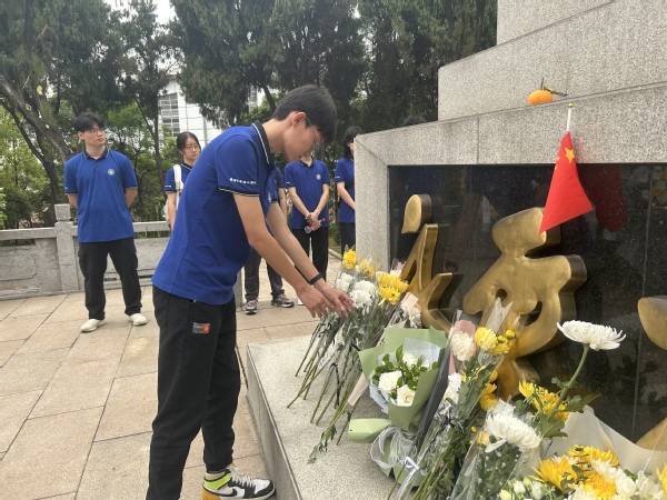 合照结束后,同志们手捧鲜花缓步向前,将饱含敬意的花束依次敬献于碑前。一束束鲜花在碑前有序摆放,寄托着同学们对革命先烈的无尽追思与崇高敬意。在默哀环节,全体同学低头肃立,现场一片寂静,只有微风拂过树叶的沙沙声。每一位成员都沉浸在对先烈的缅怀之中,内心深处涌起对革命先辈们为国家独立、民族解放而英勇献身的深深敬意,同时也更加坚定了自身的责任与担当。