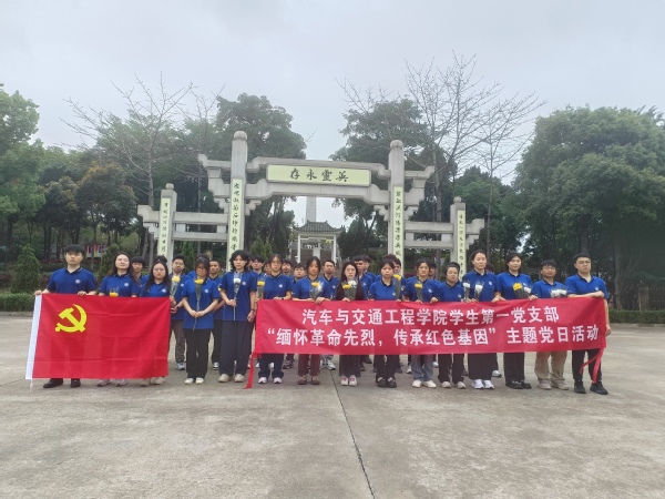 本网讯(记者 陈先桂 孙成雨)为深入推进党史学习教育,传承红色基因,弘扬英烈精神,4月12日上午9时,汽车与交通工程学院学生第一党支部来到花都区烈士陵园,开展了“缅怀革命先烈,传承红色基因”主题党日活动。本次活动通过沉浸式实践教育,引导青年学子将个人理想融入民族复兴伟业,以实际行动践行请党放心,强国有我的青春誓言。