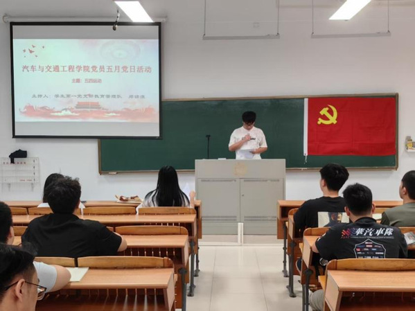 本网讯(记者 丁文君)为了激励党员在工作和生活中传承五四精神,勇于创新、敢于担当,积极投身于社会主义建设事业,为实现中华民族伟大复兴的中国梦贡献力量,汽车与交通工程学院学生第一党支部于5月13日在A1-203开展以“传承五月薪火,赓续红色血脉”为主题的党日活动。汽车与交通工程学院学生第一党支部书记卢金连及全体(预备)党员、入党积极分子参加会议。