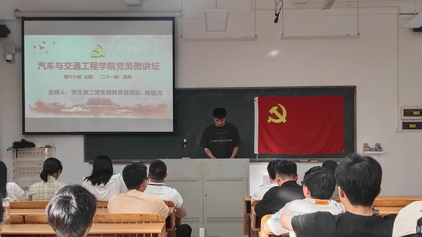 本网讯(记者 杨子钰)2025 年 5 月 22 日下午,汽车与交通工程学院党总支部在 A1-309 教室举办了第 60 期党员微讲坛,主题聚焦于“‘二十一条’事件”。学院党总支书记林叙群、总支委员、各支部委员以及全体(预备)党员、入党积极分子参与了此次活动,会议由学生第二党支部教育管理队梁铭尤同志主持。