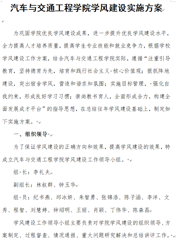 本网讯(记者 张锦浩)为巩固学院优良学风建设成果,进一步提升优良学风建设水平,提高学生对优良学风重要性的认识,提高学生专业技能和就业竞争力,激发学生遵守校纪校规、励志勤学、求真务实、健康成才的自觉性和积极性,持续提高人才培养质量。汽车与交通工程学院组织成立了2024-2025学年学院学风建设工作领导小组:以学院院长为组长,两名副院长为副组长,各教研室负责人和全体辅导员为成员。