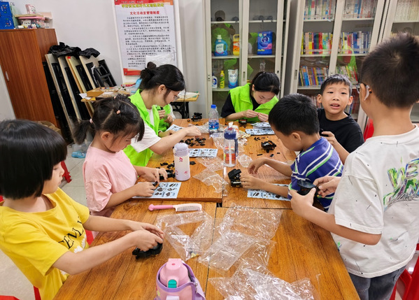 实践团成员协助小朋友制作拓染(张亚君 摄)
