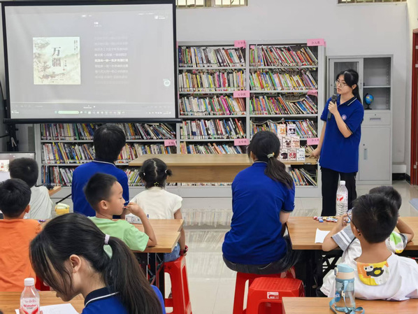 实践团成员杨熙美带领小朋友唱歌(张亚君 摄)