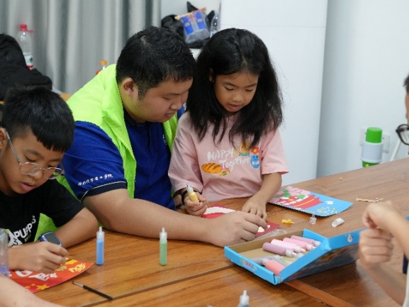 小朋友在实践团成员的帮助下制作沙画(方亿宏 摄)