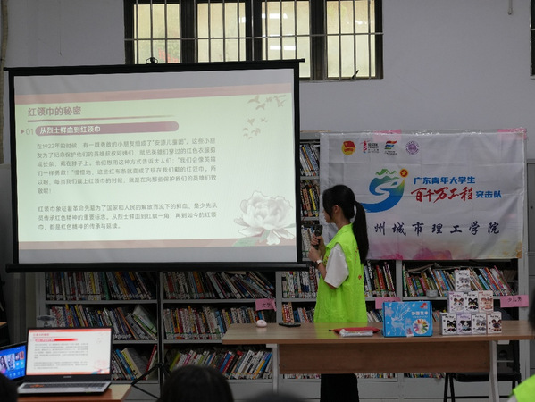 实践团成员兰莹开展“寻找闪闪的红星”课程(方亿宏 摄)