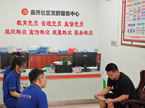 实践团与曲界社区书记洽谈资助事宜(王锶埼 摄)