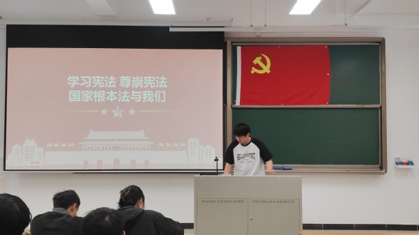 最后,张锦浩进行总结发言。他指出:宪法是社会的定盘星,是公民的必修课。今天的学习不仅是一次对宪法条文的梳理,更是一场对宪法精神的洗礼,一次对责任使命的重温。它既是我们立身处世的底线要求,更是我们守护正义的精神底色。希望全体同学以此次学习为契机,把宪法中蕴含的权利义务、价值理念,转化为明辨是非、恪守规矩;将凝聚的法治共识、担当意识,转化为维护公平、践行正义的自觉行动。以“宪法伴我行”的姿态,为推进全面依法治国与民族复兴的伟大征程贡献青春力量!