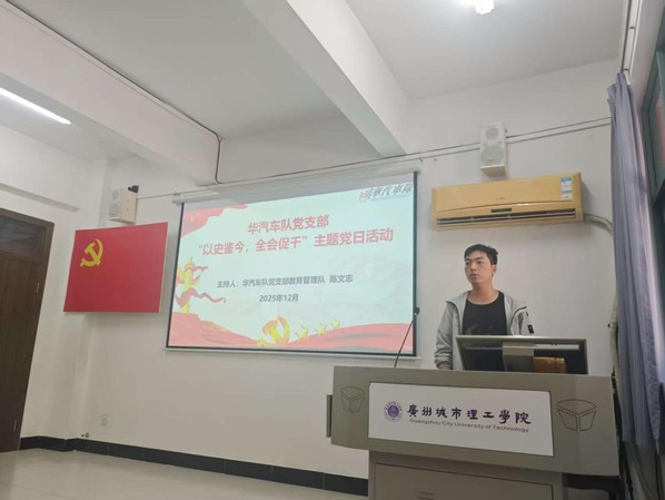 本网讯(记者 刘冲)为了铭记历史,厚植家国情怀,深入学习贯彻党的二十届四中全会精神。汽车与交通工程学院华汽车队党支部于12月11日13:00在B6-203举办“以史鉴今 全会促干”主题党日活动。党支部书记陈增起、副书记朱智勇以及全体(预备)党员、入党积极分子参加本次活动,活动由陈文志同志主持。